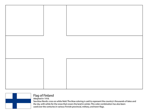 Puedes imprimir dibujos de la bandera de Finlandia para colorear. Es muy divertido elegir los colores y hacer tu bandera única. Puedes usar azul y blanco, los colores de la bandera, o también añadir otros colores para hacerla aún más especial.